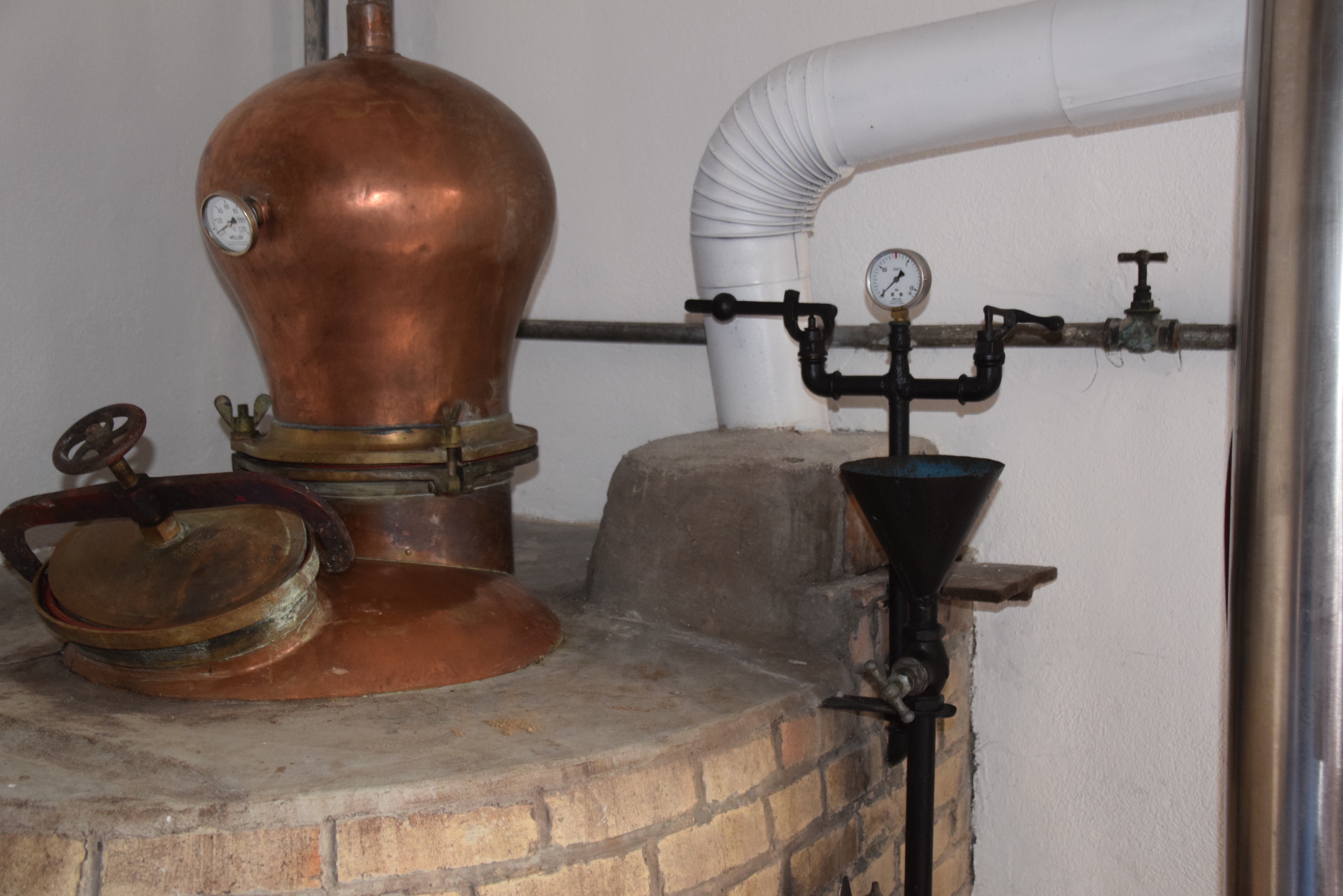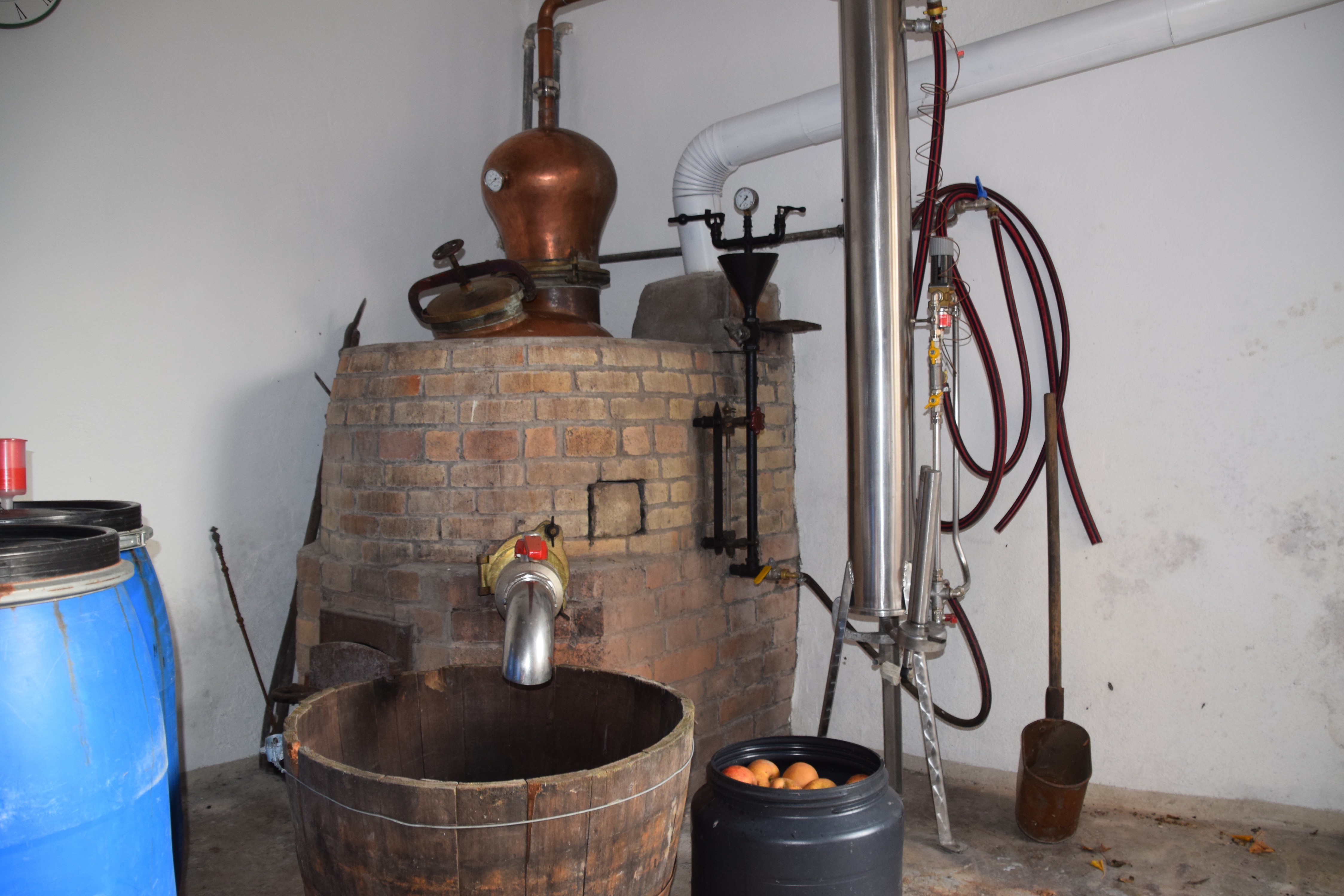 Das Erlenhaus verfügt seit 80 Jahren über ein Brennrecht. Die Destille ist etwas modernisiert aber nur geringfügig. Alles muss noch von Hand gemacht werden. Es gibt keine Pumpen und selbst die Stromzufuhr für Licht muss jedes Mal mit einem Verlängerungskabel hergestellt werden. Alles ist noch sehr ursprünglich und daher auch nur in sehr kleinem Rahmen möglich.